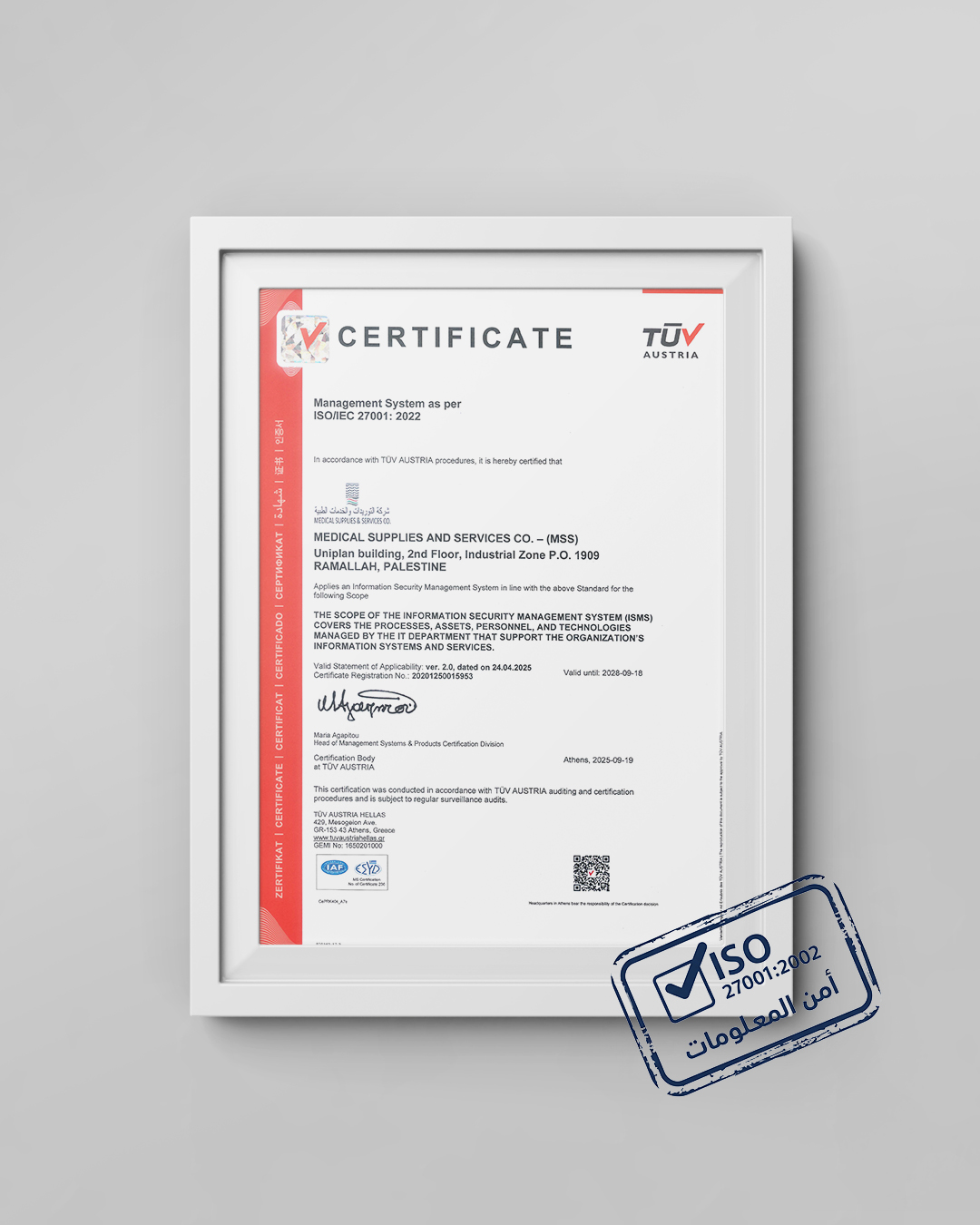 ISO/IEC 27001:2022 حصلت شركة التوريدات والخدمات الطبية على شهادة الأيزو العالمية